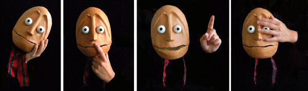 Boumbada Boum (l’œuf géant nommé Humpty Dumpty dans l’œuvre originale) est une marionnette très particulière : elle n’a pas de corps — et pour cause ! —, et ce sont les bras et les mains du manipulateur qui participent directement à sa gestuelle et à son expressivité :