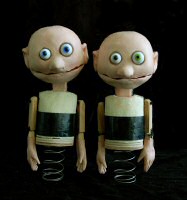 ce qui devait grandement réjouir les petits victoriens qui voyaient des personnages bien connus d’eux sortir de leur cadre habituel. Mais aujourd’hui, alors qu’aucune référence à cette nursery rhyme n’est plus opérante, en particulier pour un public francophone, nous n’en avons gardé que les jumeaux eux-mêmes, pour lesquels Michel Klein a inventé un type de marionnette inédit, la marionnette à ressort, idée que nous trouvons très carrollienne !