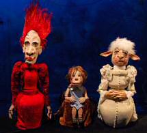 Voici la chose faite avec cette troisième et dernière chronique. Elle ne compte qu’une section, sous la forme d’un synopsis du spectacle illustré par les photos de toutes les marionnettes, dont certaines (celle d’Alice, par exemple) attendent encore leur costume définitif. Il manque dans ces visuels un élément qui nous tient beaucoup à cœur, les photos des deux comédiens eux-mêmes : le spectacle ne compte pas que des scènes purement marionnettiques et les deux personnages interprétés par Vanessa Defasque et Michel Klein y tiennent une place essentielle… Mais le temps nous est compté, comme vous vous en doutez, et les marionnettes se prêtent mieux à une séance photo légère. Nous nous attellerons dès la mi-octobre à la réalisation des photos du spectacle achevé.