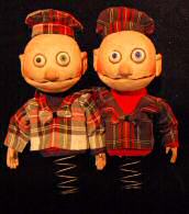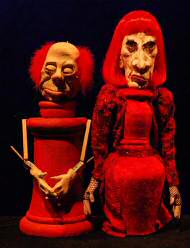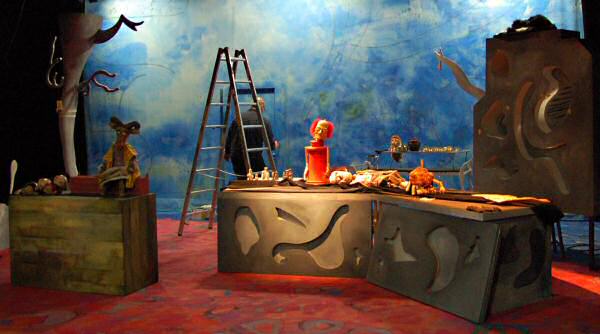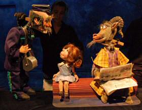 Voici la chose faite avec cette troisième et dernière chronique. Elle ne compte qu’une section, sous la forme d’un synopsis du spectacle illustré par les photos de toutes les marionnettes, dont certaines (celle d’Alice, par exemple) attendent encore leur costume définitif. Il manque dans ces visuels un élément qui nous tient beaucoup à cœur, les photos des deux comédiens eux-mêmes : le spectacle ne compte pas que des scènes purement marionnettiques et les deux personnages interprétés par Vanessa Defasque et Michel Klein y tiennent une place essentielle… Mais le temps nous est compté, comme vous vous en doutez, et les marionnettes se prêtent mieux à une séance photo légère. Nous nous attellerons dès la mi-octobre à la réalisation des photos du spectacle achevé.