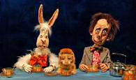 C’est au tour de trois des plus célèbres comparses du Pays des Merveilles de croiser la route d’Alice, autour d’une table chargée de tasses de thé. Où il est question d’un Loir qui parle à l’envers, d’un Lapin qui graisse les rouages d’une montre avec du beurre, et d’un Chapelier qui se lamente de la punition infligée à eux par le Temps, définitivement figé à cinq heures (five o’clock) — ceci expliquant l’amoncellement de tasses et la partie de thé éternellement recommencée...