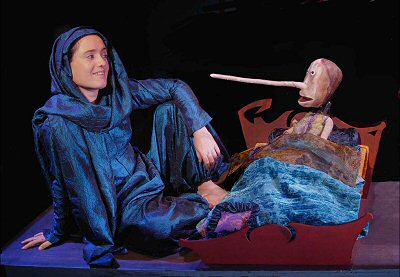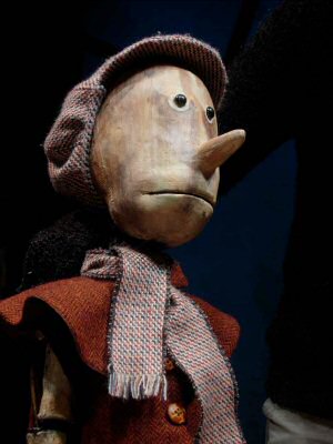 Pour de nombreux marionnettistes, Pinocchio est un mythe. Ne s’agit-il pas des aventures d’une célébrissime marionnette ? À la construction en forme de théâtre dans le théâtre qu’implique toute mise en scène marionnettique de Pinocchio, nous avons même rajouté une strate, puisque nous racontons l’histoire d’un marionnettiste et de sa jeune partenaire (sa fille ? son apprentie ?) qui construisent et répètent un spectacle nommé... Pinocchio !