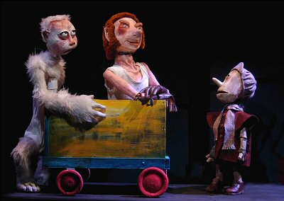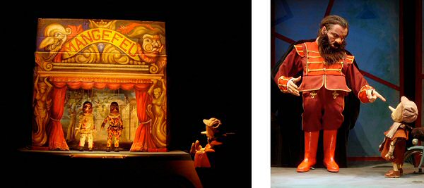 Nous n'avons pas gardé l'épisode du Pays des Jouets et de Pinocchio transformé en ânon qu'il y a dans le film, et un personnage comme Lucignolo (comment s'appelle-t-il dans le film ?) n'existe pas dans notre version, mais ne vous inquiétez pas : même si vous ne retrouvez pas ou ne reconnaissez pas certains personnages du film, vous en découvrirez beaucoup d'autres, et notre spectacle est plein de surprises...