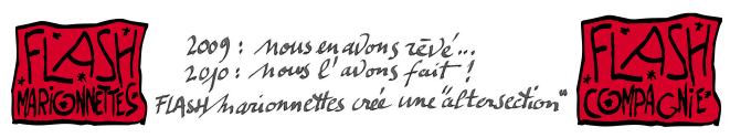 Avec l’exigence qui a toujours été la nôtre dans nos spectacles de théâtre et marionnettes, Flash Compagnie s’attache à découvrir de nouveaux espaces d’expression dans un répertoire destiné à un public adolescent et adulte.